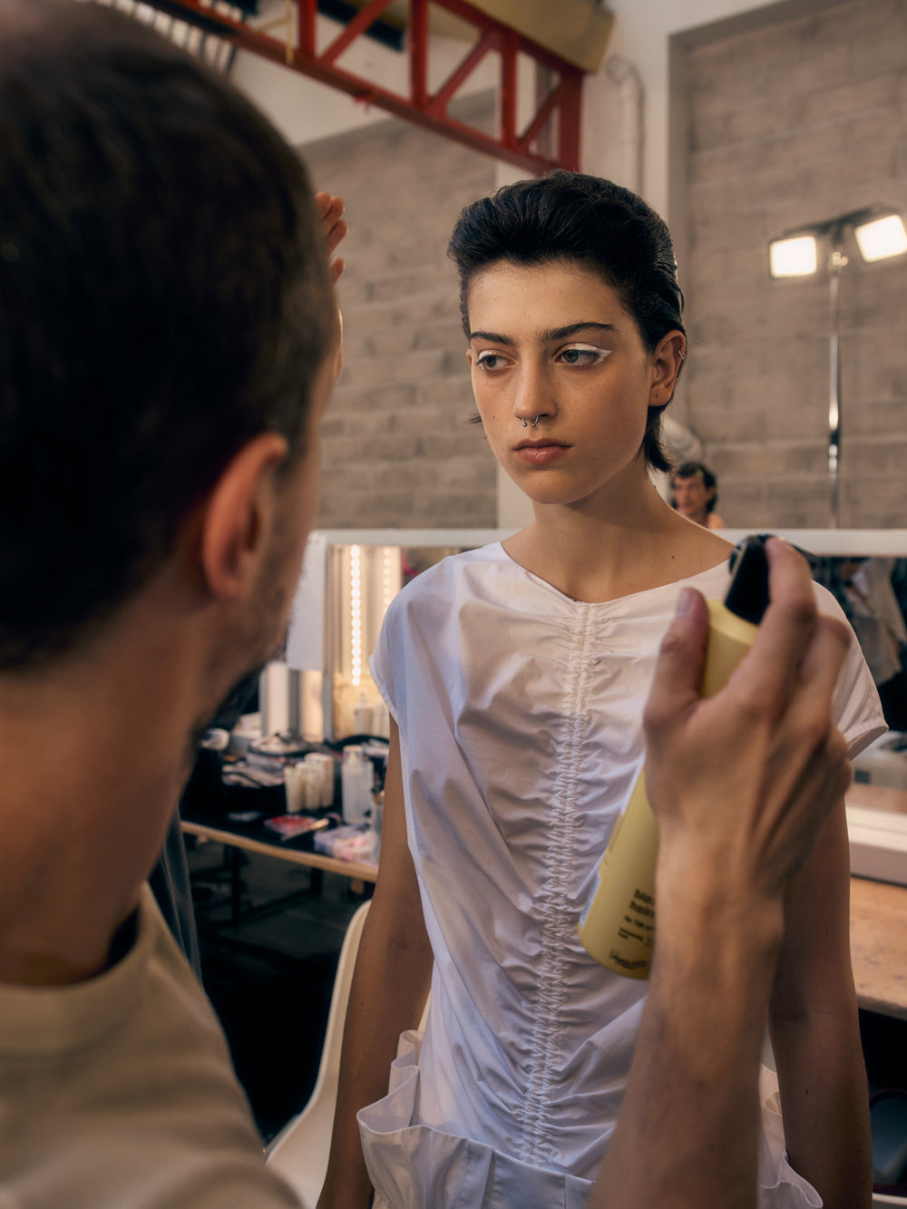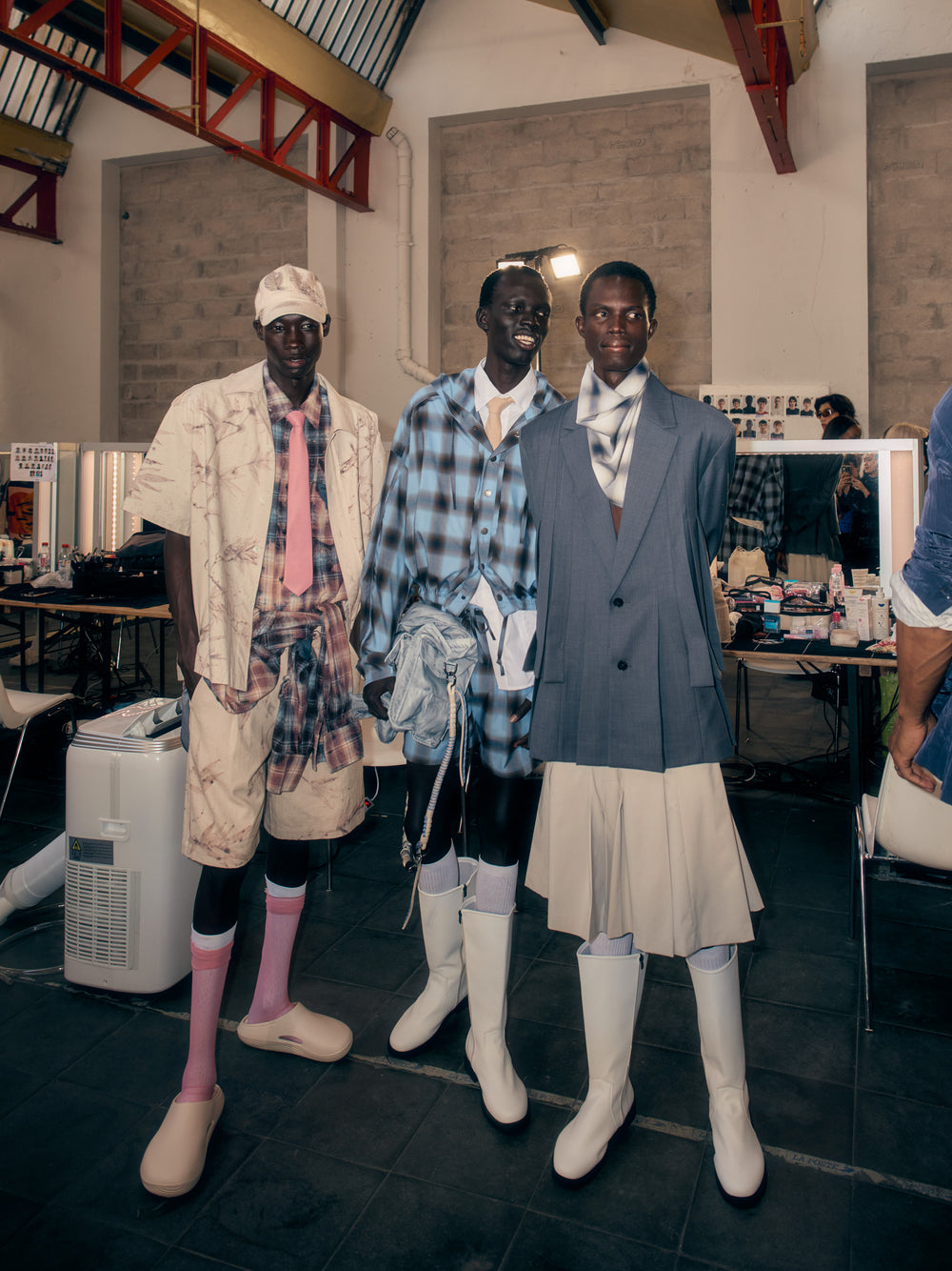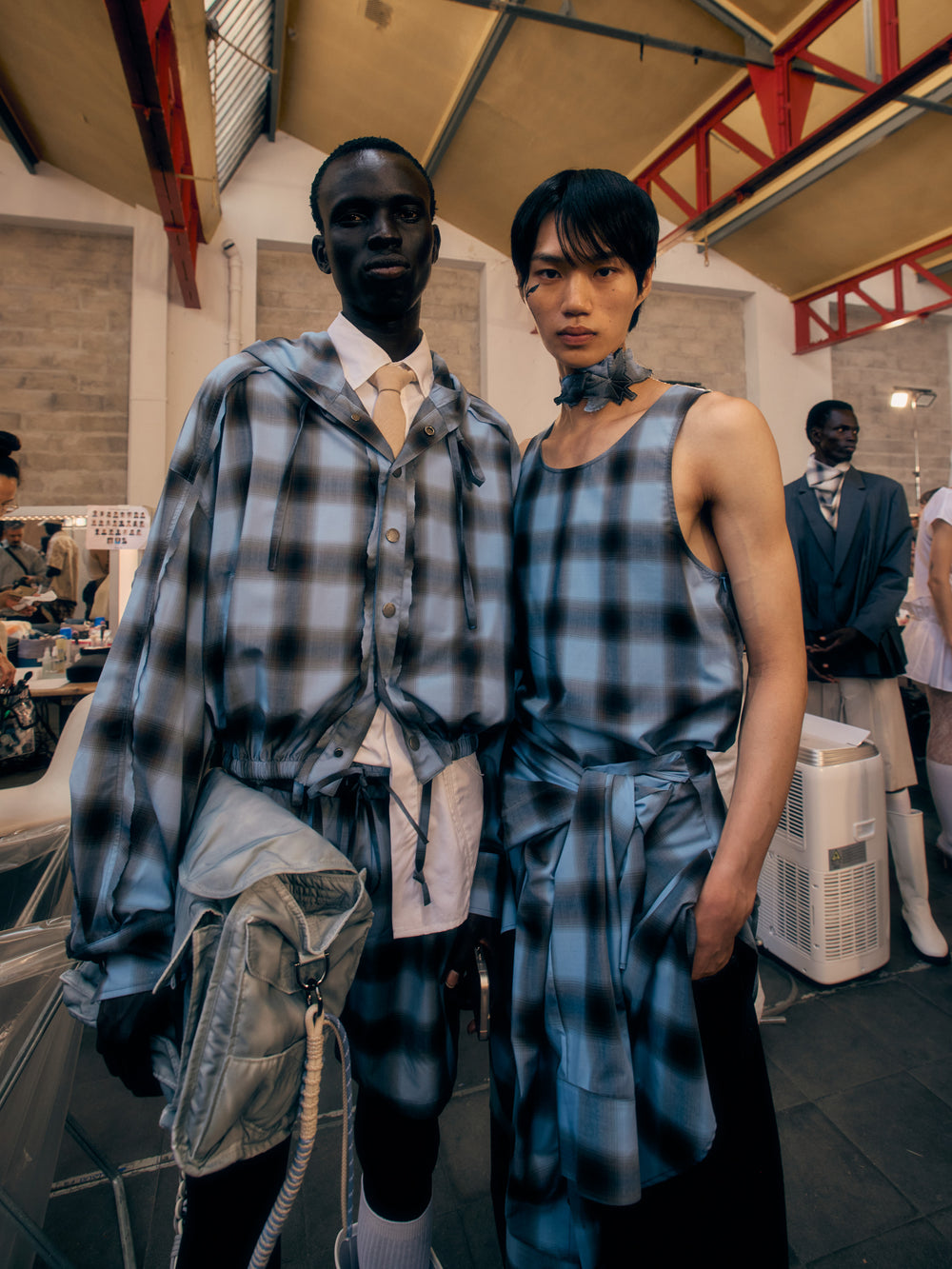 Backstage at Feng Chen Wang’s SS26 show, it’s less chaos, more quiet choreography - steam rising off pressed cotton, botanical prints breathing on hangers, Russell Westbrook laughing softly in the corner. There’s a stillness in the beauty here. GAFFER slipped behind the scenes to capture the moments before the runway, where every thread held meaning and every detail told a story. We spoke with Feng about process, purpose, and the emotional architecture of her latest collection, asking her about innovation, identity, and the quiet power of nature.