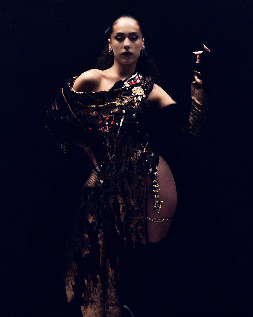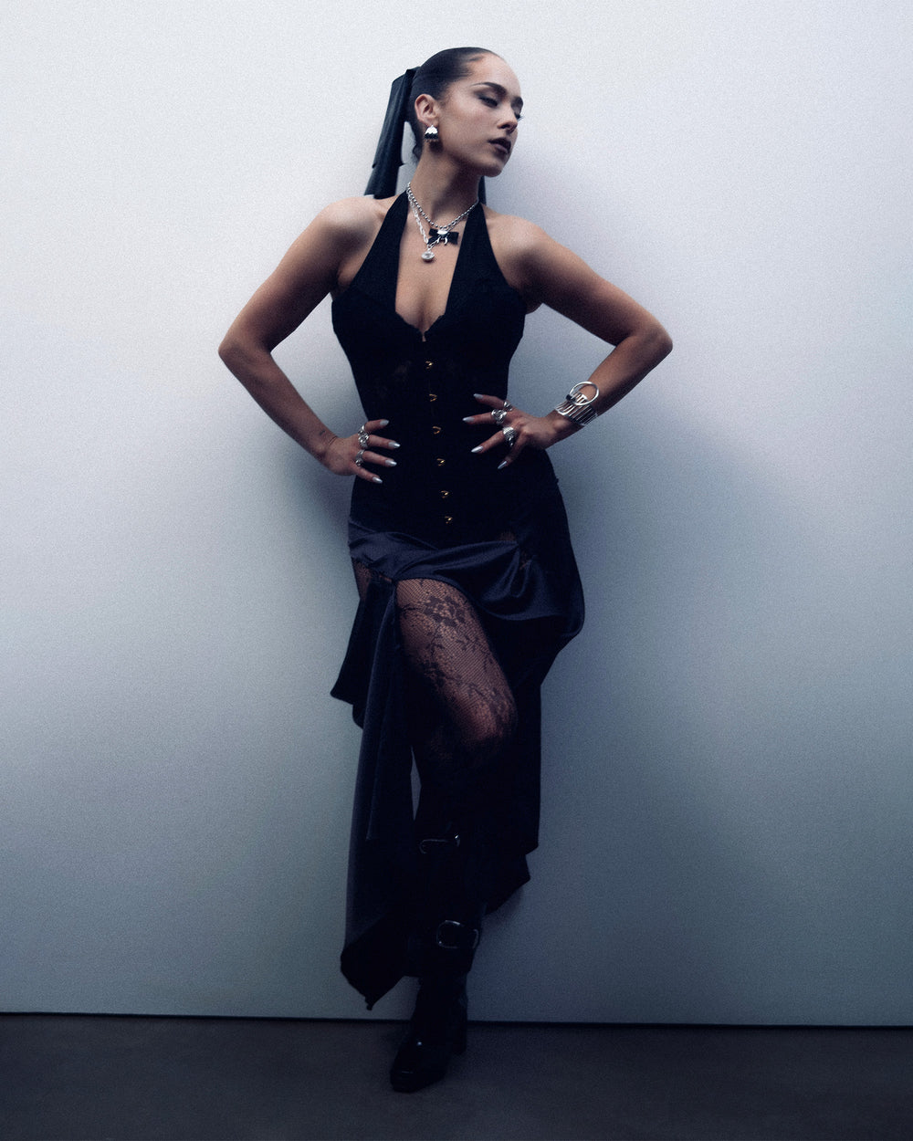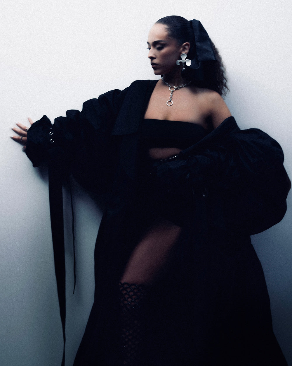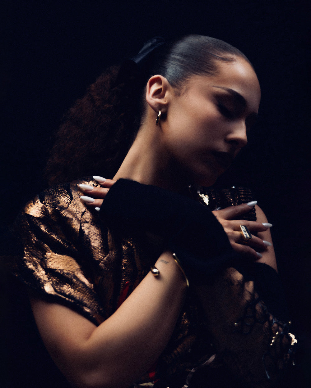 Music was always a form of manifestation. Even before the heartbreak was real. “When I was younger I used to write songs that hadn’t happened yet. I would make stories up, and then they’d end up happening. So I think this project was me manifesting happiness.” She pauses. “It worked. I do not care anymore.”